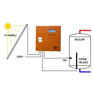 MPPT regulátor V-SH-2000 zvyšuje efektivitu připojených fotovoltaických panelů optimalizací vstupní impedance připojeného topného tělesa bojleru.