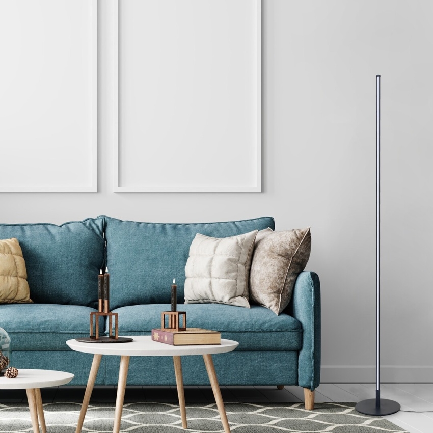 Stojací lampu Luigi doporučujeme těm, kteří by si do moderního obývacího pokoje rádi vybrali skutečně překvapivý model, zcela odlišný od běžných stojacích lamp. Díky extrémně malé prostorové náročnosti je Luigi také ideální volbou do menších místností. Dlouhá, tenká noha černého modelu vyrobená z kovu není taková, jak se zdá, takže k ní není připevněna ani hlava lampy. V tomto případě hraje roli svítidla noha lampy. Stabilitu Luigi zajišťuje kulatá plochá ozdobná základna, bílé stínidlo je vyrobeno z plastu. Stojací lampa má vestavěný LED světelný zdroj spadající do energetické třídy G, s výkonem 18 W, svítivostí 1050 lumenů se stínidlem, 1930 lumenů bez stínidla a životností 25 000 hodin. Barevná teplota světelného zdroje je 3000 K, lampa vyzařuje odpovídající teplé bílé světlo, které napomáhá vytvořit v místnosti intimní, domáckou atmosféru. Rozměry stojací lampy Luigi jsou následující: výška 1465 mm, instalační průměr 200 mm, délka kabelu 2200 mm.