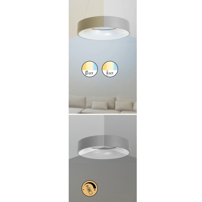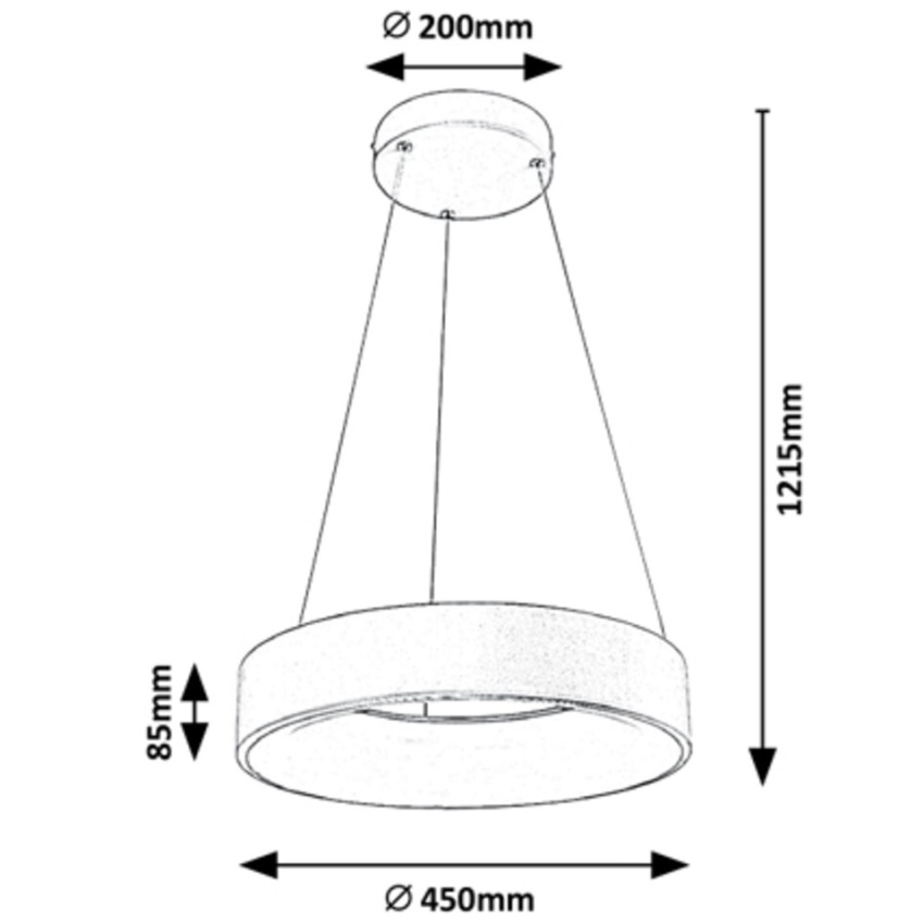 Kulaté závěsné svítidlo Adeline v minimalistickém stylu bude zvláštním doplňkem vašeho moderního obývacího pokoje, ložnice nebo dokonce nábytku vaší pracovny. Šedé svítidlo s bílým stínítkem má množství skvělých funkcí: je možné ho ztlumit, jas lze podle přání měnit pomocí dálkového ovladače a jeho barevnou teplotu je také možné nastavit v rozmezí 3000 - 6000 K pomocí nástěnného vypínače nebo dálkového ovládání. To znamená, že toto závěsné svítidlo může dle vašeho výběru svítit teplým, přirozeným nebo studeným bílým světlem. Svítidlo Adeline, které je vyrobeno z kovu se zaoblenými rohy a akrylovým stínidlem, má také funkci nočního světla a paměťovou funkci, kterou je možné ovládat pomocí nástěnného vypínače nebo dálkového ovladače. Vestavěný LED zdroj světla má výkon 24 W, světelný tok 1 500 lumenů a životnost 20 000 hodin. Závěsné svítidlo Adeline má průměr 450 mm, výšku 85 mm a instalační průměr 200 mm. Vzdálenost od stropu je 1215 mm.