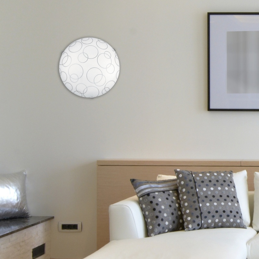 Nástěnné či stropní svítidlo ze skla s kruhy. Žárovka není součástí balení.