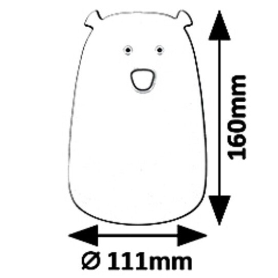Baloo dekorační svítidlo vyrobeno ze silikonu je jemné na dotek a může být oblíbeným doplňkem dětského pokoje. Rozkošnou postavičku plyšového medvídka můžete umístit na noční stolek nebo poličku; jeho teplá bílá barva vytváří příjemný pocit a na nejmenších působí uklidňujícím dojmem. Pokud potřebujete z nějakého důvodu jít do dětského pokoje uprostřed noci, může se vám hodit trochu diskrétního světla. Baloo má lithium-ionovou baterii, takže si můžete vybrat, kam jej chcete umístit. Bílý barevný model je vybaven vestavěným LED světelným zdrojem s výkonem 0,4 W, svítivostí 29 lumenů a barevnou teplotou 3000 K, přesto dokáže svítidlo Baloo díky své funkci RGB vyzařovat také červené, zelené nebo modré světlo. Rozměry dekoračního svítidla, které je možné ovládat "dotykovým" spínačem, jsou: výška 160 mm, průměr 111 mm.