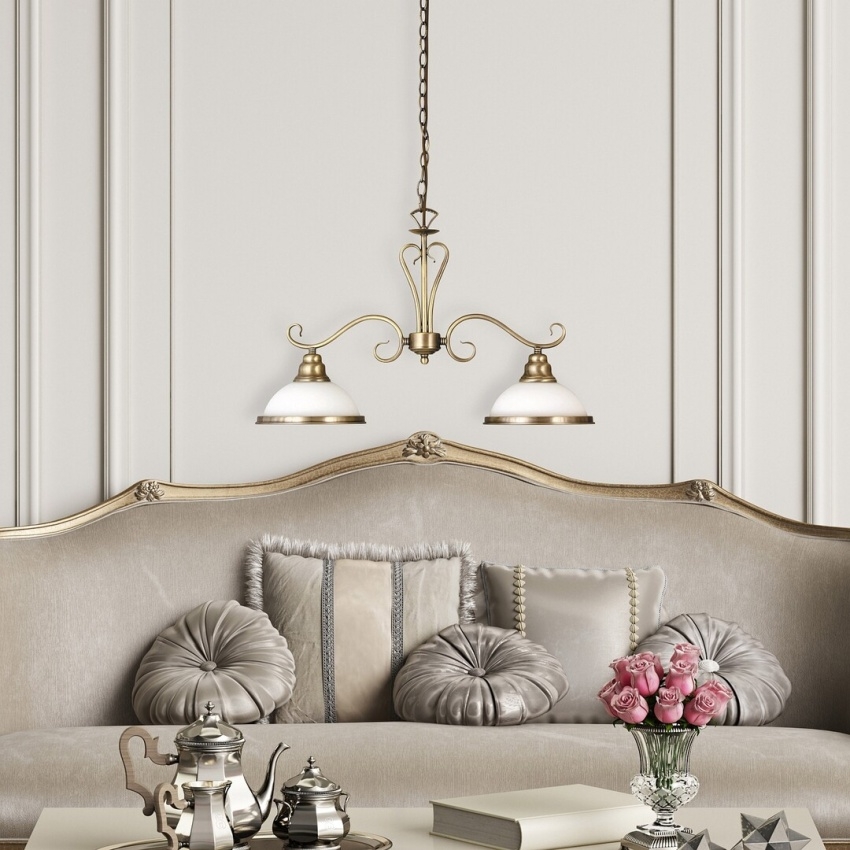 Závěsný lustr Rabalux 2757 Elisett s dvěma rameny,2xE27, 230V, IP20,bronz/ bílá, Kov, sklo