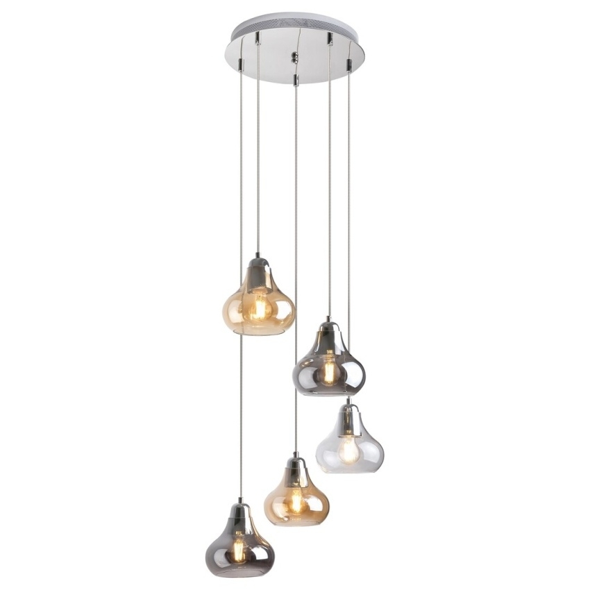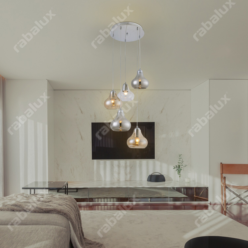 Moderní závěsné svítidlo Jezabel s 5 světly se doporučuje používat především v obývacím pokoji nebo nad jídelním stolem. Chromové svítidlo kovového modelu je doplněno úzkým kouřovým sklem stínítka a kulatým, též chromovým dekorativním podstavcem. Jezabel je možné používat s pěti zdroji světla do 60 W, závit typu E27. Pokud chcete vylepšit útulnou, intimní atmosféru, vyberte si zdroj teplého bílého světla. Jezabel má průměr 360 mm a jeho vzdálenost od stropu je 1700 mm. Závěsné svítidlo s 5 světly je dodáváno bez zdroje světla.
