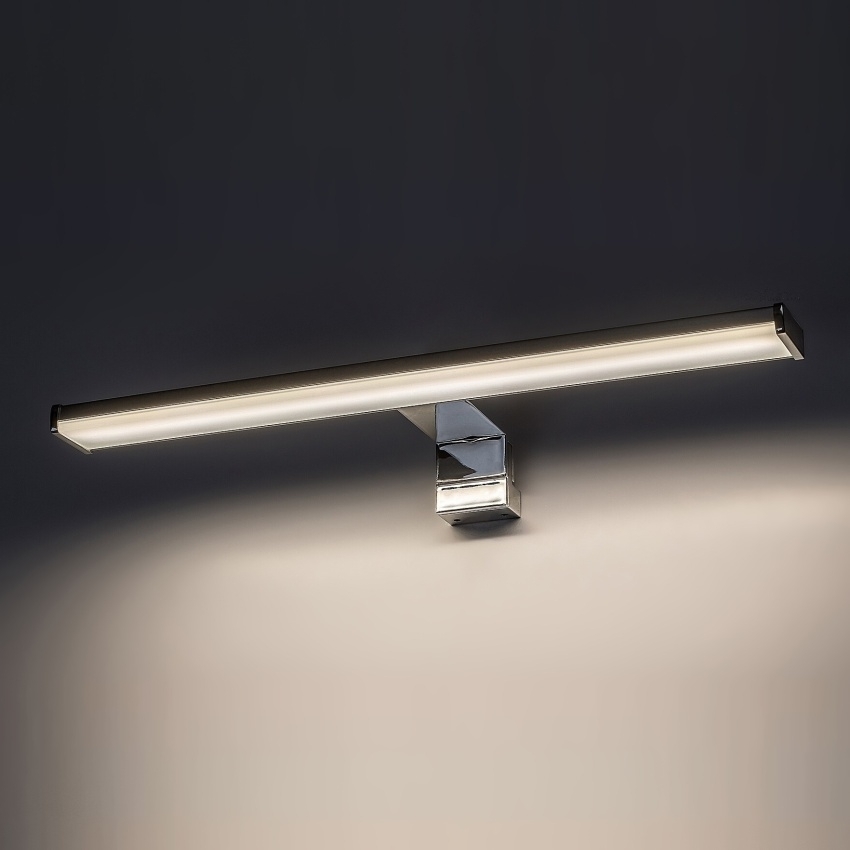 Koupelnové nástěnné svítidlo Levon s moderním designem a chromovou barvou může být elegantním doplňkem téměř každé koupelny. Zvláštností našeho svítidla Levon je, že jej lze namontovat nejen na stěnu, ale i na koupelnový nábytek nebo dokonce na zrcadlo nad umyvadlem, čímž osvětlí místnost přirozeným bílým světlem. Nástěnné svítidlo je vybaveno vestavěným světelným zdrojem LED. Výkon světelného zdroje je 8 W, jeho svítivost je 560 lumenů a teplota jeho barvy je 4 000 K. Lampa má mimořádně dlouhou životnost kolem 30 000 hodin. Plastový model má krytí IP44, což zajišťuje jeho ochranu před pronikáním předmětů s maximálním průměrem 1 mm, jakož i proti stříkající vodě z jakéhokoliv úhlu. Svítidlo Levon má následující rozměry: délka 400 mm, výška 52,5 mm, vzdálenost od stěny 125 mm. Koupelnové svítidlo Levon přichází s 5-letou zárukou.