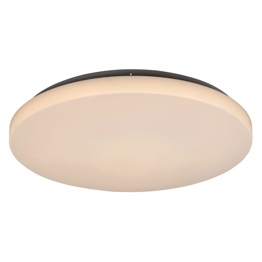 Moderní stropní svítidlo Rob je osazeno integrovaným LED zdrojem o výkonu 32W, 2100lm a 3000K. Průměr svítidla je 380 mm a vzdálenost od stropu je 63 mm. Tělo svítidla je vyhotovené z kovu a stínítko z umělé hmoty. Toto funkční svítidlo je možné použít kdekoliv v interiéru a poskytne dostatek světla.