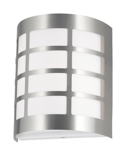Venkovní nástěnné svítidlo s moderním vzhledem, designem odolným proti UV záření a ochranou IP44 proti stříkající vodě a prachu. 20 cm vysoké, 17,2 cm široké svítidlo vyrobeno z plastu a kovu v barvě nerezavějící oceli lze použít se světelným zdrojem s výkonem až 11 W, patice typu E27. Model je možné použít pouze s energeticky úsporným zdrojem světla!