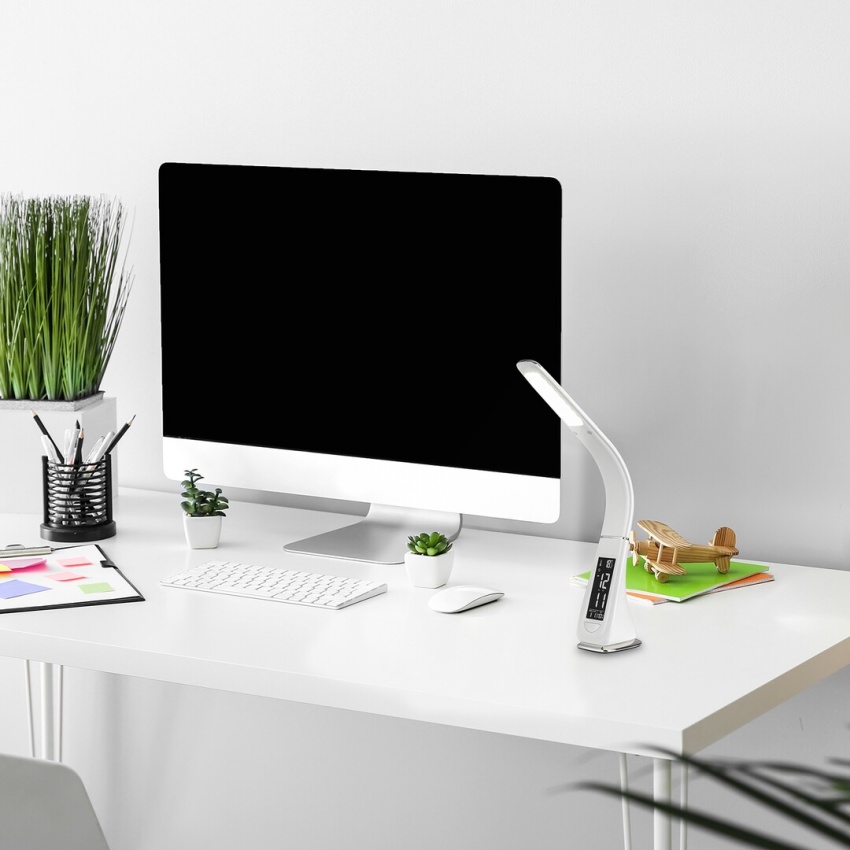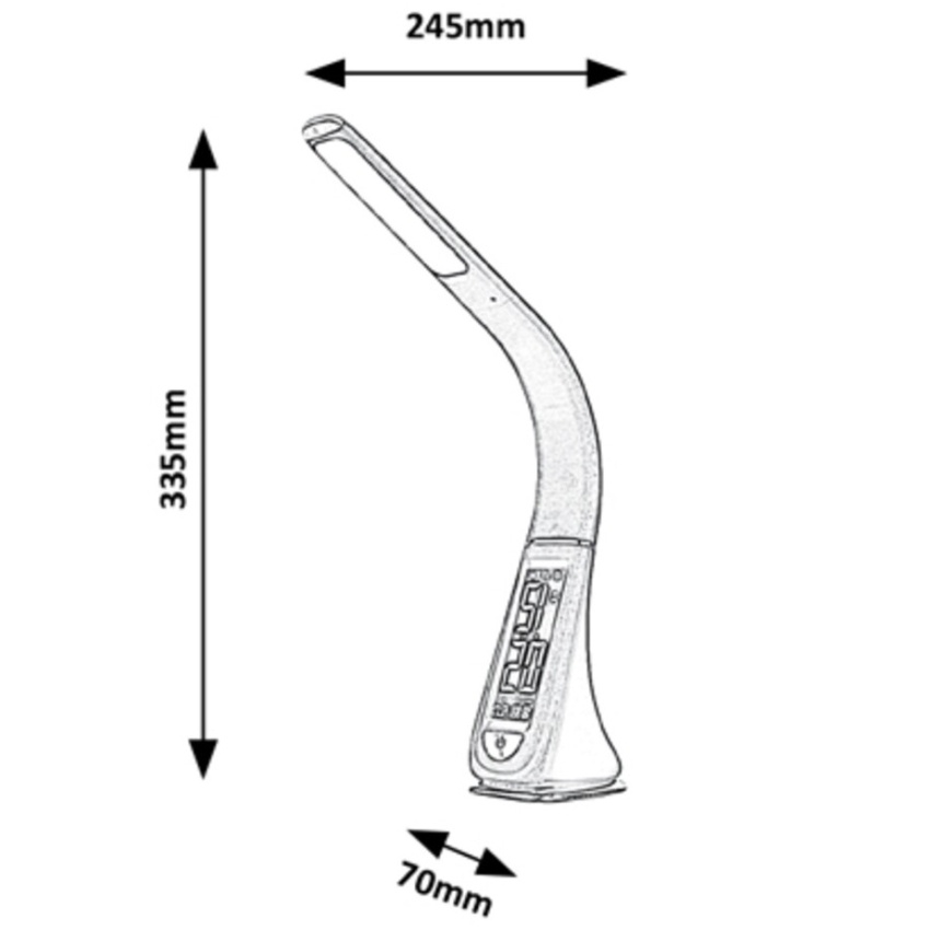 Moderní stolní svítidlo Lionel bude skvělou volbou v pracovně nebo dětském pokoji. Tento celoplastový model s přirozeným bílým světlem může poskytnout skvělou podporu při práci nebo učení. Jeho digitální displej s pohodlnou velikostí písma zajišťuje snadnou čitelnost. Navíc díky svému designu zabírá skutečně málo místa, což z něj dělá praktickou volbu i pro menší pracovní stůl. Tento bílý model vyrobený v pružném provedení má zabudovanou žárovku LED s výkonem 5 W, světelný tok 260 lumenů a životnost 30 000 hodin. Světelný zdroj má barevnou teplotu 5 000 K. Svítidlo Lionel je možné ztlumit, to znamená, že jas lze nastavit pomocí dotykového spínače ve spodní části žárovky. Digitální displej svítidla je provozován baterií CR2032, která je součástí balení. Rozměry stolního svítidla jsou následující: šířka dekoračního podstavce je 70mm, celková výška svítidla je 335mm, výsuv 245mm.