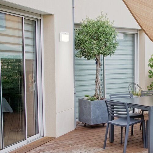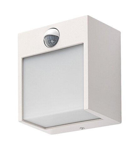Venkovní nástěnné svítidlo Balimo v moderním stylu s pohybovým senzorem je vyrobeno z hliníku v matné bílé barvě a je doplněno o bílé plastové stínidlo. Toto čtvercové svítidlo je skvělou volbou na terasu u vchodových dveří, ale můžete jej nainstalovat kdekoli na vnější stěnu vašeho domu, kde je třeba osvětlení pro bezpečný pohyb. Svítidlo Balimo obsahuje vestavěný LED světelný zdroj s výkonem 12W, světelným tokem 560 lumenů a životností 25000 hodin. Svítidlo má barevnou teplotu 4 000 K a podle toho svítí přirozeným bílým světlem. Senzor detekuje pohyb ze vzdálenosti 7 metrů při zorném úhlu 106°. Rozměry tohoto venkovního svítidla jsou následující: šířka 120mm, výška 130mm, vzdálenost od stěny 95mm. Má krytí IP44, které zajišťuje ochranu proti vniknutí předmětů do průměru 1 mm a proti stříkající vodě z jakéhokoli směru. Na venkovní nástěnné svítidlo Balimo s pohybovým senzorem poskytujeme záruku 5 let.