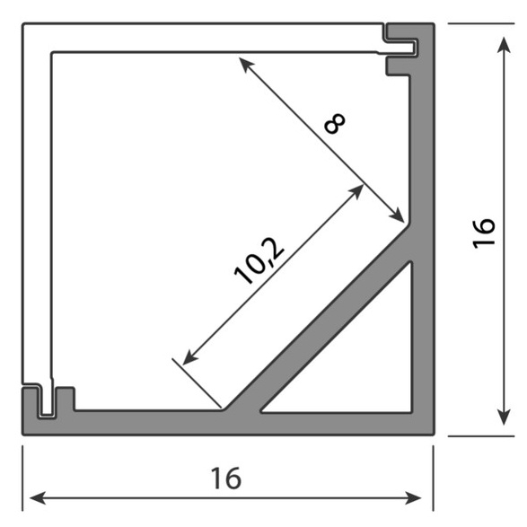 Rohový hliníkový profil RD, 16x16 mm, včetně čirého difuzoru, 2 m