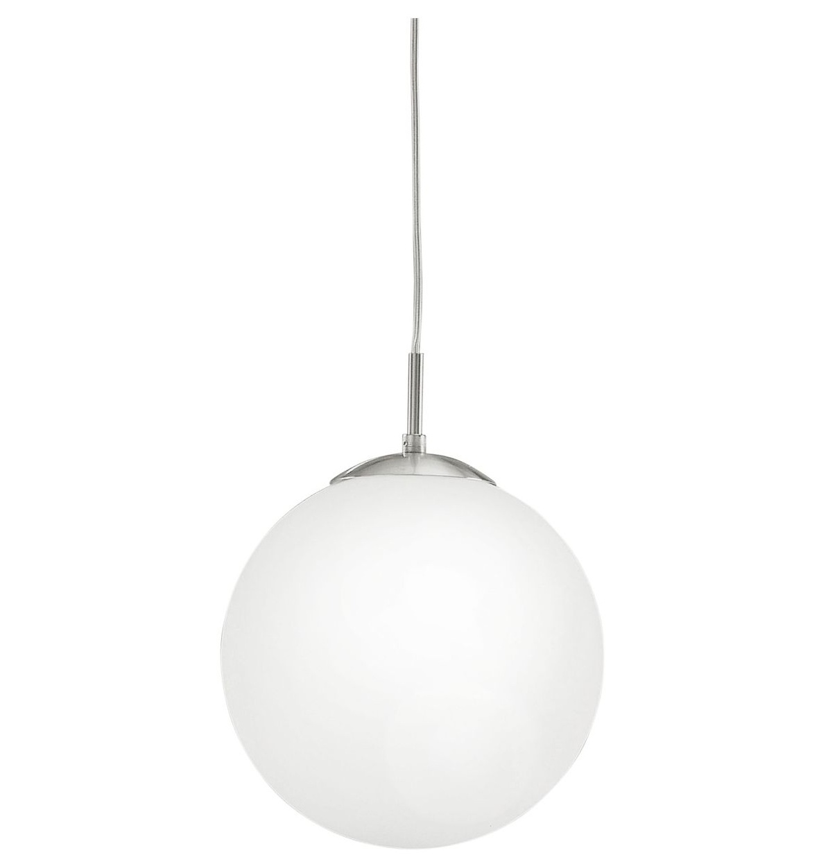 Závěsné svítidlo RONDO se vyznačuje bílou matnou opálovou skleněnou koulí zavěšenou na kulatém saténově niklovém kovovém vrchlíku. Díky svému jednoduchému designu se závěsné svítidlo hladce hodí k různým stylům interiérového designu a poskytuje útulné osvětlení vašeho domova, ať už v obývacím pokoji nebo jídelně. Žárovka není součástí dodávky. Výrobek má objímku žárovky E27 a vyžaduje žárovku E27.