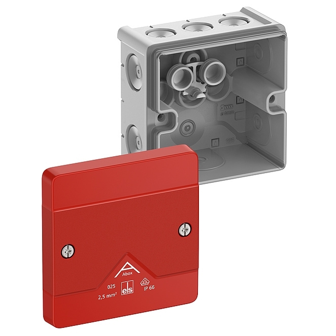 šedá, Ui=1000 V AC, s červeným víkem, bez svorek, pro označení proudových obvodů bezpečnostního osvětlení
