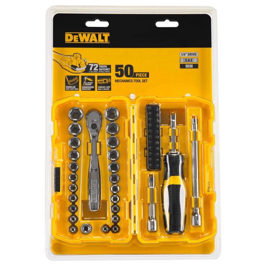 50dílná sada hlavic a bitů s ráčnou 1/4"