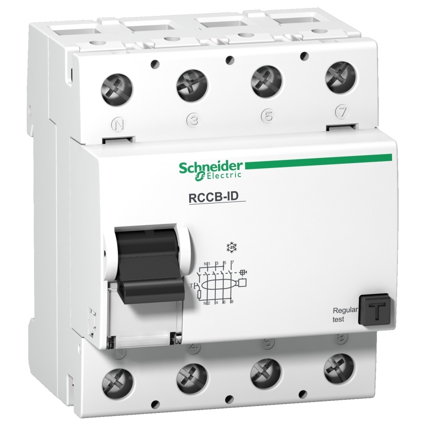 Proudový chránič ID Fi, 4p, 125A, třída AC 100mA. řada: Acti 9 - typ produktu nebo součásti: proudový chránič (RCCB) - umístěni nulového vodiče: vlevo - typ sítě: AC - třída proudového chrániče: typ AC.