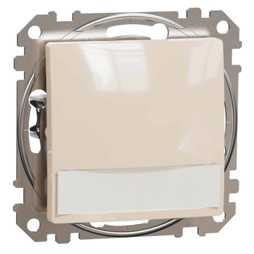Push-Button, Sedna Design & Elements, 1-way, 12V, 10A, with blue locator and label holder, beige