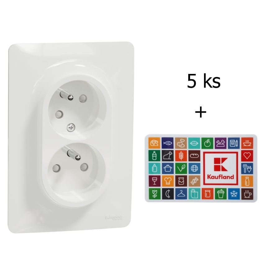 Dvojzásuvka pootočená, 16 A, 230 V, bílá - 5 ks v balení.