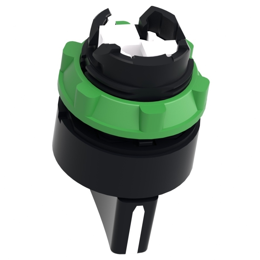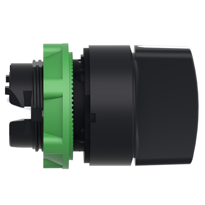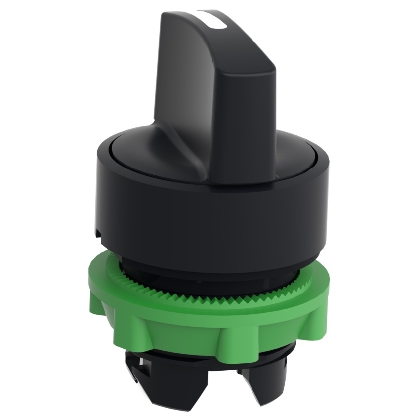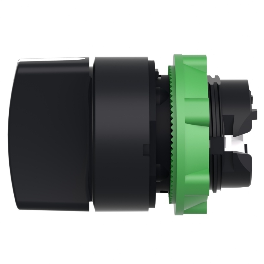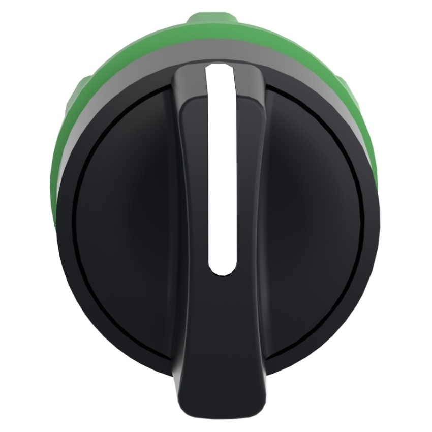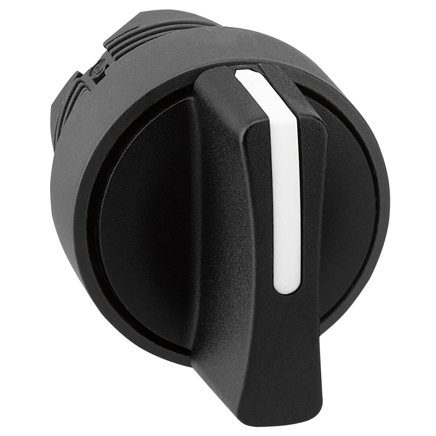 Ovládací hlavice otočná Harmony XB5, černá, se standardní rukojetí, má 3 polohy, funguje s pružinovým návratem do středu.