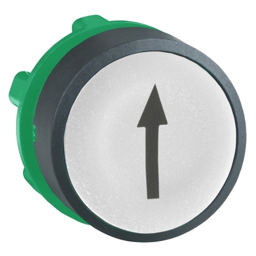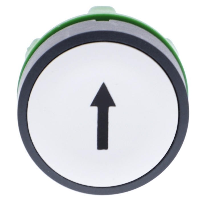 Ovládací hlavice s hřibovým knoflíkem Harmony XB5. Je označen symbolem "šipka nahoru".