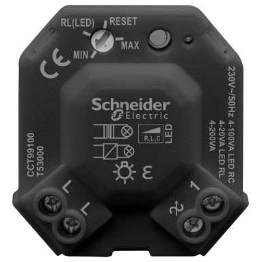 Stmívač LED zdrojů 230V CCT99100, v tmavě šedé barvě.