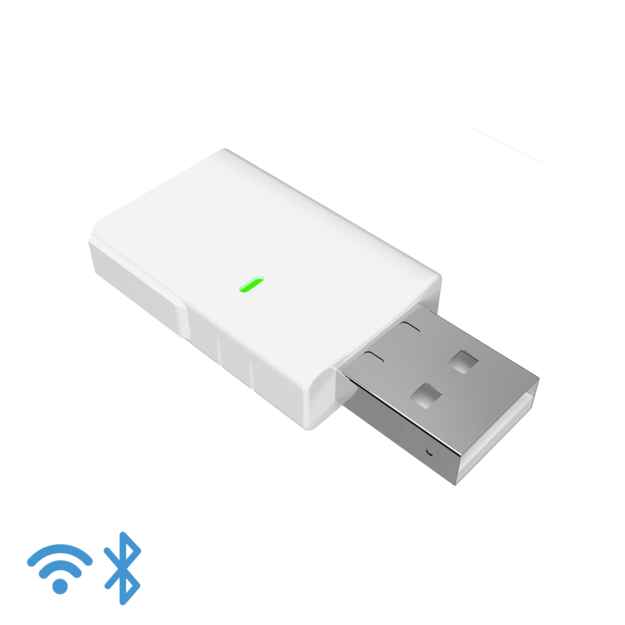 Shelly BLU Gateway je malý USB klíč, který slouží jako brána mezi zařízeními Shelly BLU a uložištěm Shelly Cloud.
