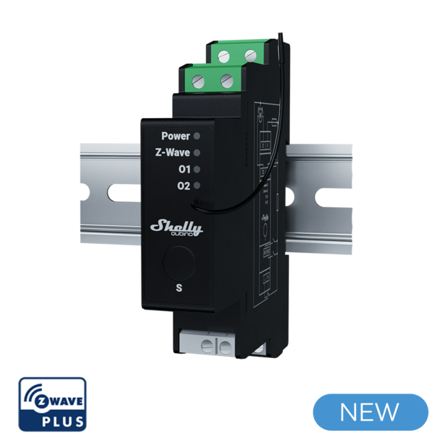 Zařízení Shelly Wave Pro Shutter lze namontovat na lištu DIN a umožňuje dálkové ovládání motorizovaných žaluzií, rolet, žaluzií, markýz atd.