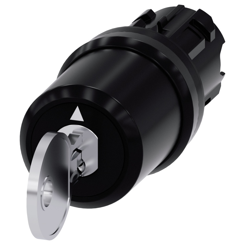 Klíčový přepínač CES, 22 mm, kruhový, plastový, číslo zámku SSG10, se 2 tlačítky, 3 polohy spínače I> O< II, momentální typ kontaktu, aktivační úhel 2x45°, 10:30h/12h/13:30h, demontáž klíče O