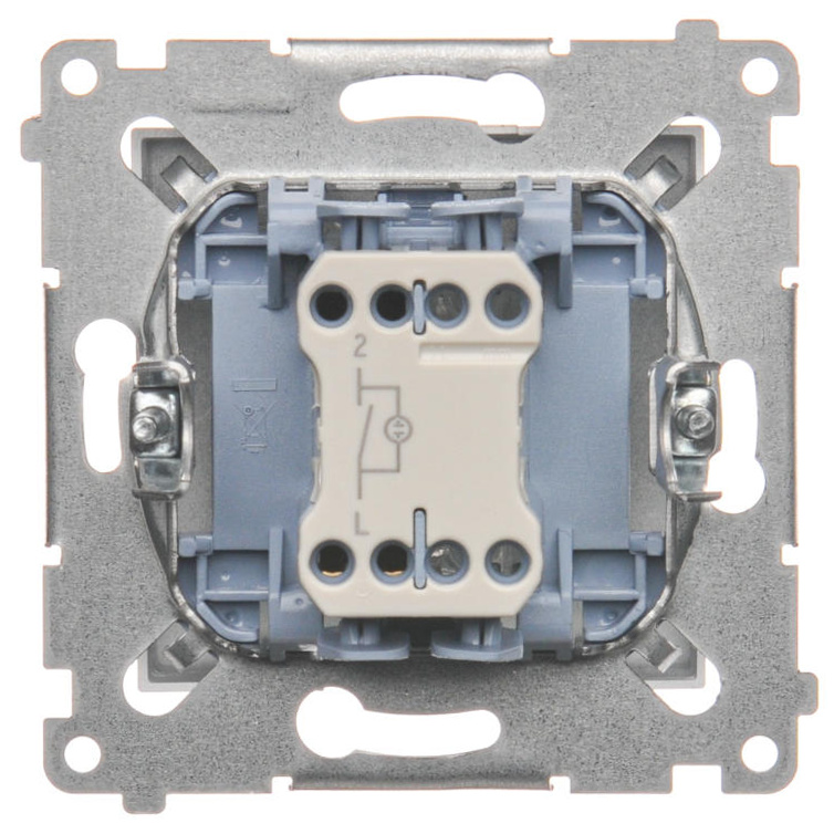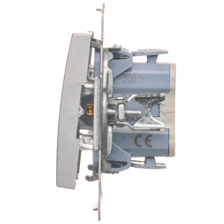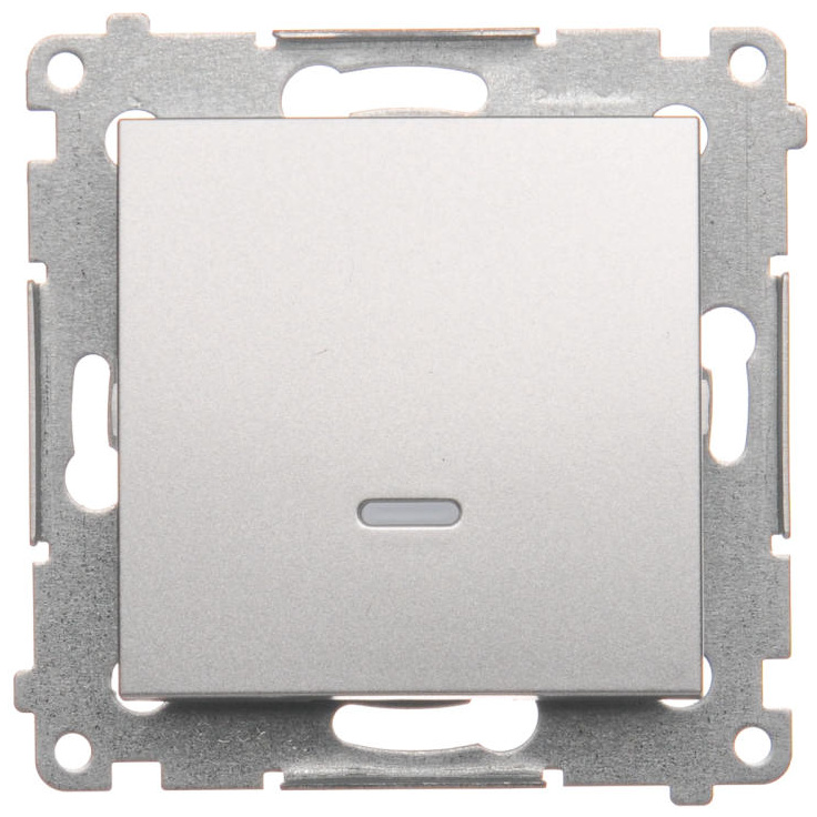Simon 54 DW1L.01/43 Spínač jednopólový, s orientačním LED podsvětlením, řazení 1So, (strojek s krytem) 10AX, 250V~, bezšroubové svorky, Stříbro