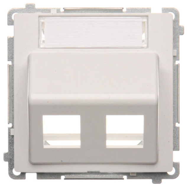 Kryt zásuvky komunikační dvojnásobné (pro prvky Keystone), šikmé s popisovým polem, Bílá
