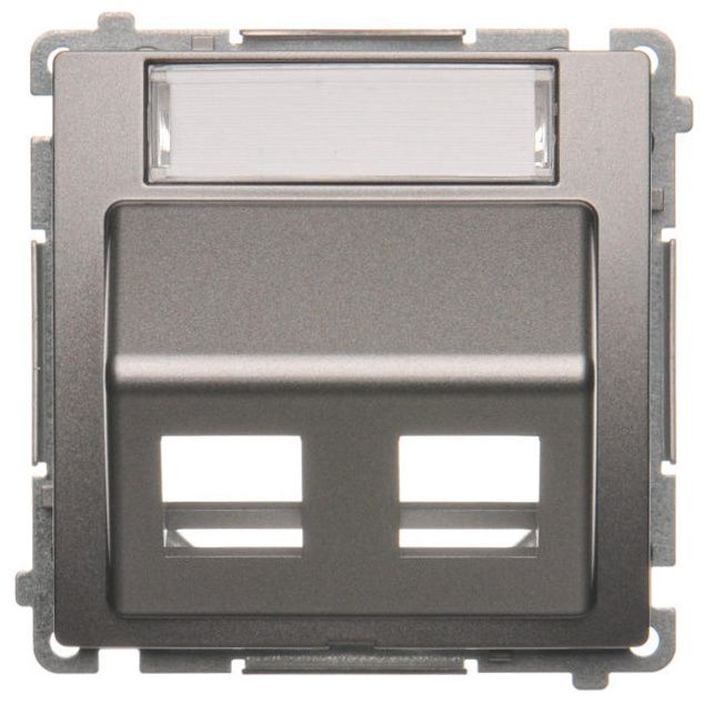 Kryt zásuvky komunikační dvojnásobné (pro prvky Keystone), šikmé s popisovým polem, Inox