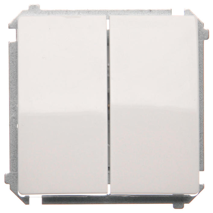 Přepínač dvojitý střídavý, řazení 6+6, (strojek s krytem) 10AX, 250V~, šroubové svorky, Bílá