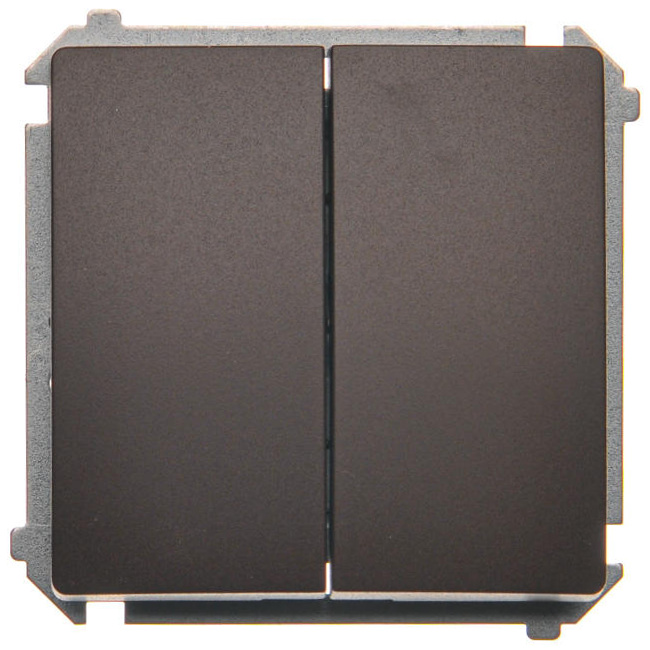 Přepínač dvojitý střídavý, řazení 6+6, (strojek s krytem) 10AX, 250V~, šroubové svorky, Čokoláda