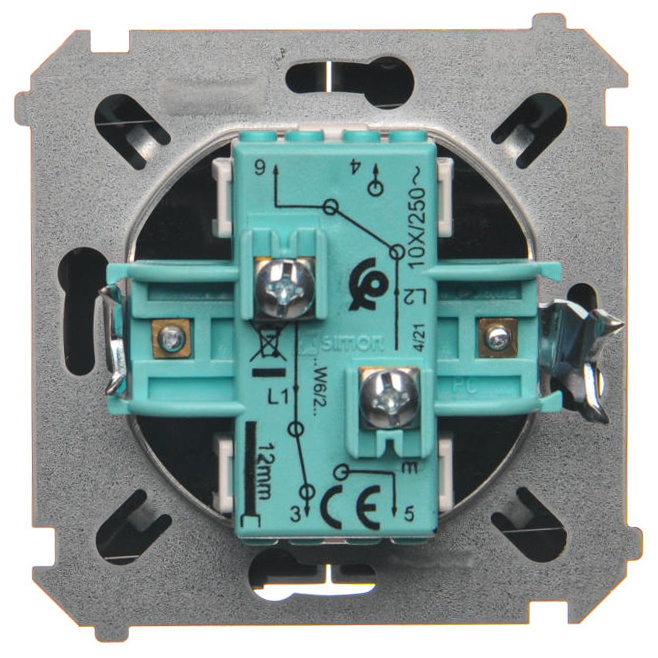 Přepínač dvojitý střídavý, řazení 6+6, (strojek s krytem) 10AX, 250V~, šroubové svorky, Grafit