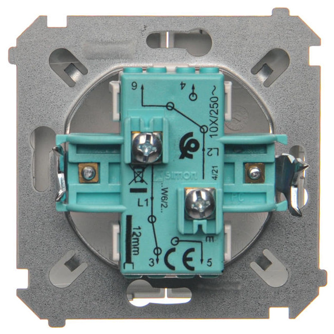 Přepínač dvojitý střídavý, řazení 6+6, (strojek s krytem) 10AX, 250V~, šroubové svorky, Inox