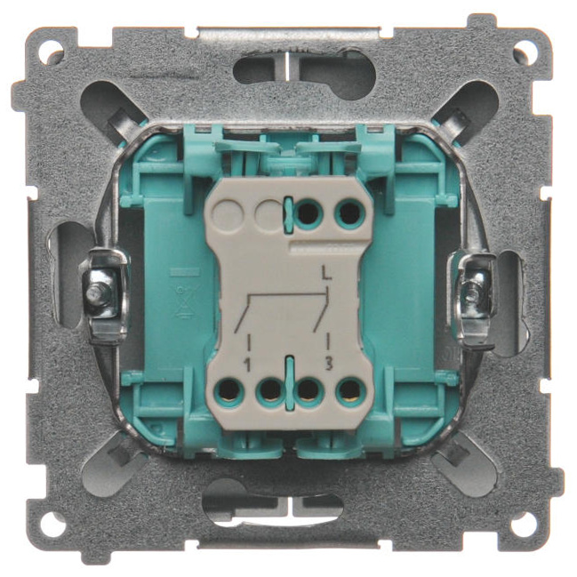 Přepínač sériový, řazení 5, (strojek s krytem) 10AX, 250V~, bezšroubové svorky,Stříbro