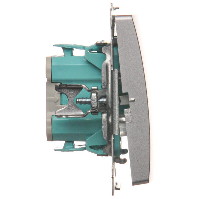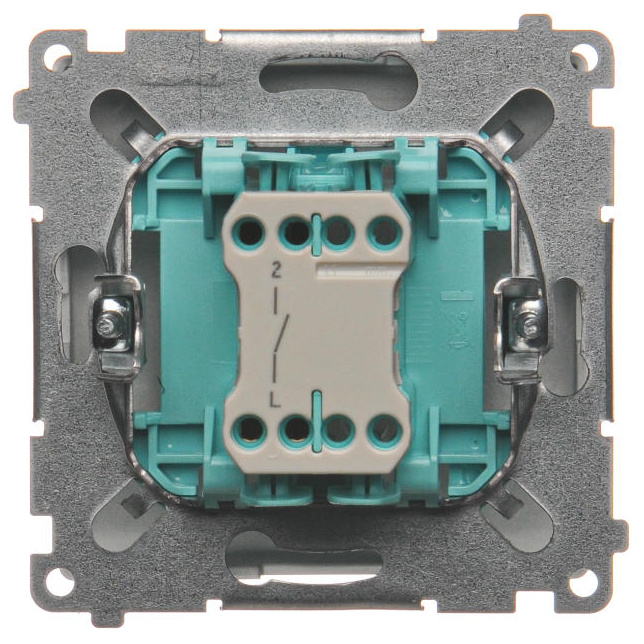 Spínač jednopólový, řazení 1, (strojek s krytem), 10AX, 250V~, bezšroubové svorky, Stříbro