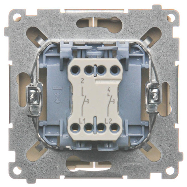 Ovládač zapínací dvojitý, řazení 1/0+1/0, (strojek s krytem), 16AX 250V~, bezšroubové svorky, Béžový