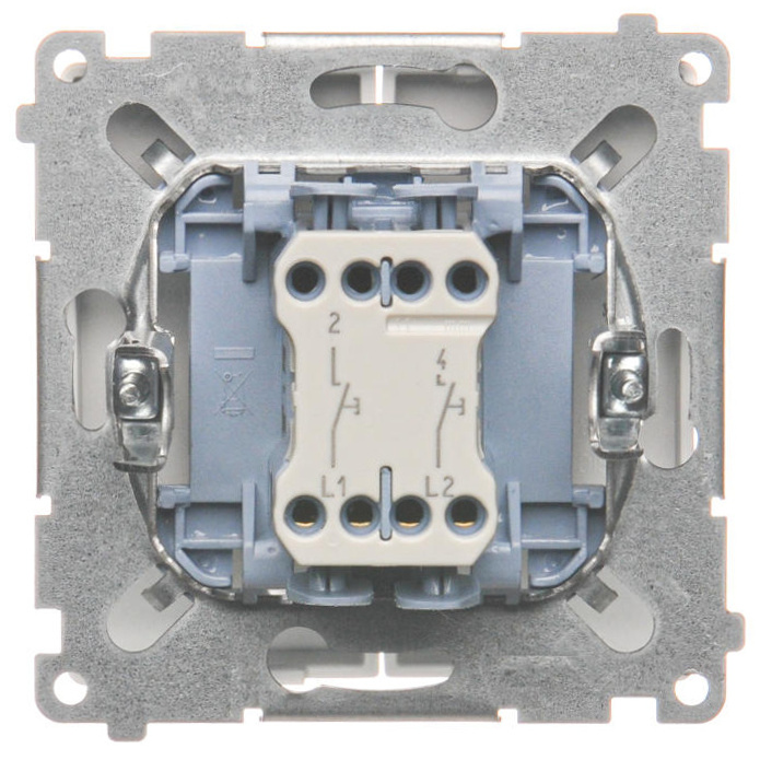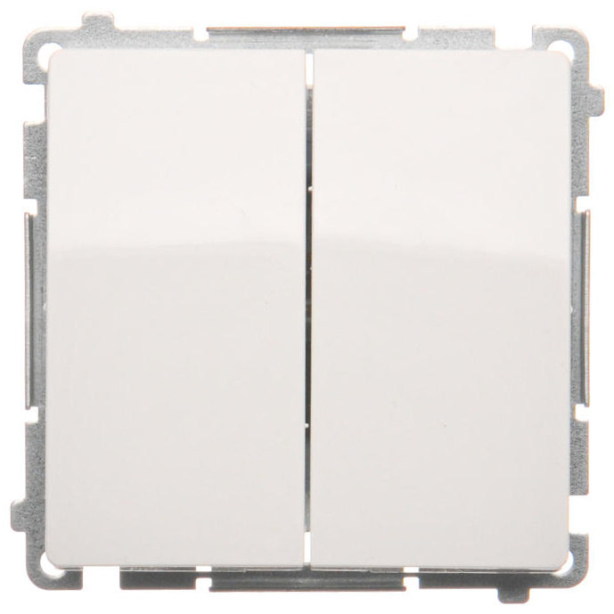 Ovládač zapínací dvojitý, řazení 1/0+1/0, (strojek s krytem), 16AX 250V~, bezšroubové svorky, Bílá