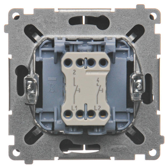 Ovládač zapínací dvojitý, řazení 1/0+1/0, (strojek s krytem), 16AX 250V~, bezšroubové svorky, Grafit