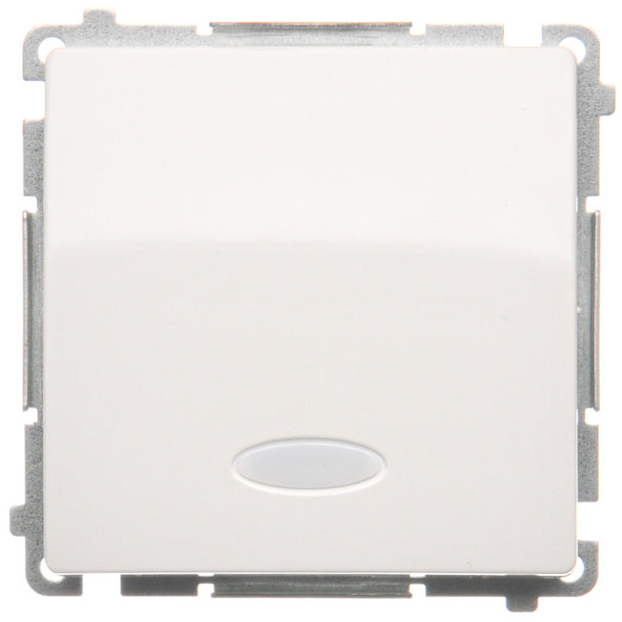 Ovládač zapínací, s orientačním LED podsvětlením, řazení 1/0 So, bez piktogtamu, (strojek s krytem) 10AX, 250V~, bezšroubové svorky, Bílá