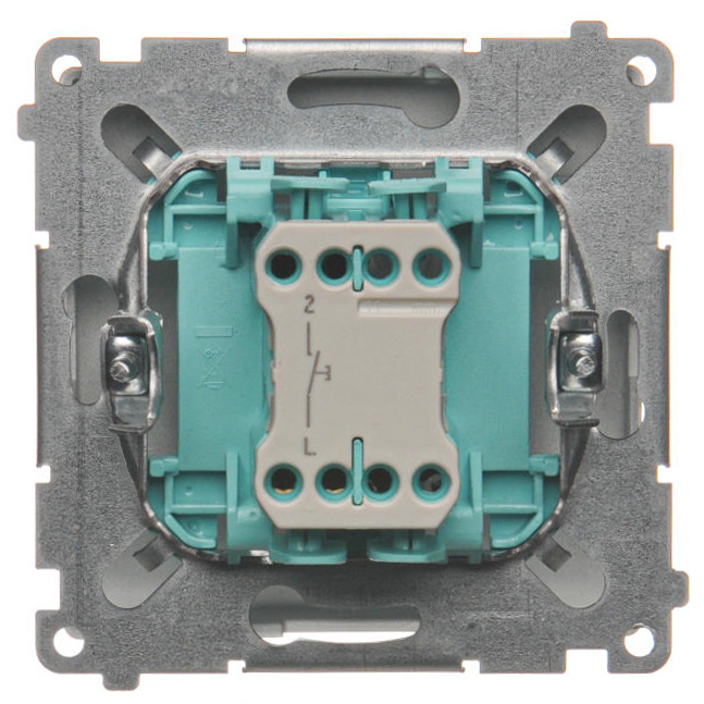 Ovládač zapínací, řazení 1/0, bez piktogramu, (strojek s krytem) 10AX, 250V~, bezšroubové svorky, Stříbro