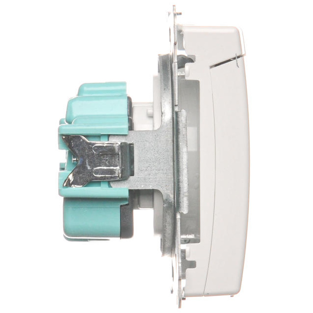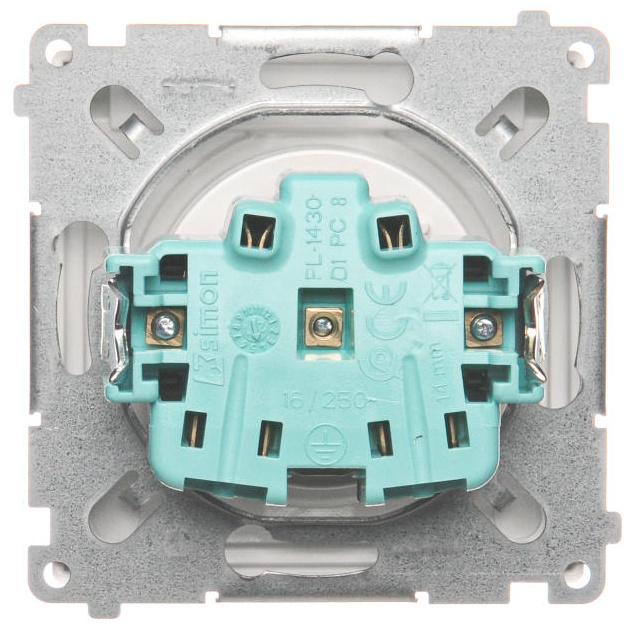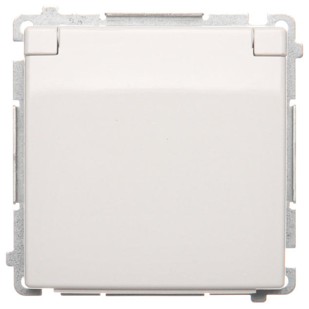 Zásuvka jednonásobná IP44 s uzemněním, 16 A, 250 V~ (strojek s krytem), s clonkami, s bílým víčkem, šroubové svorky, Bílá