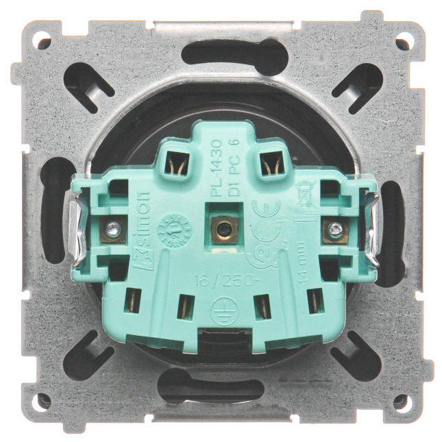 Zásuvka jednonásobná IP44 s uzemněním, 16 A, 250 V~ (strojek s krytem), šroubové svorky, s průhledným víčkem, Čokoláda