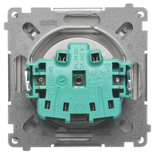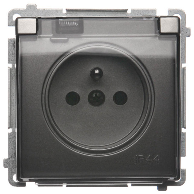Zásuvka jednonásobná IP44 s uzemněním, 16 A, 250 V~ (strojek s krytem), šroubové svorky, s průhledným víčkem,Satén