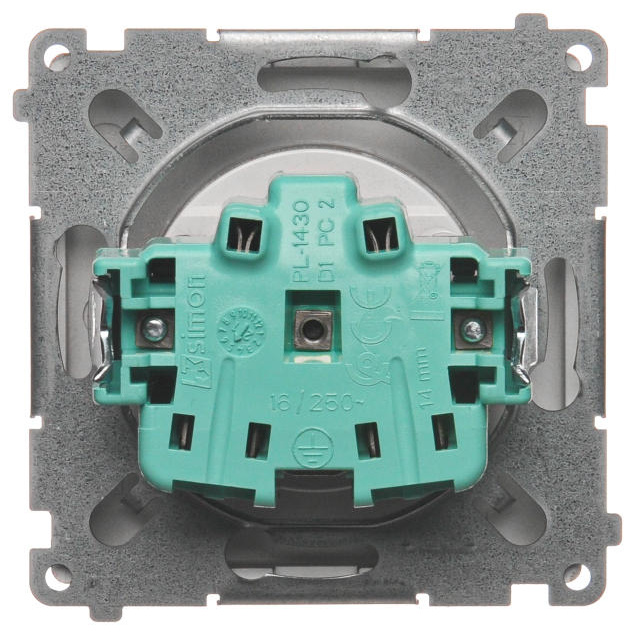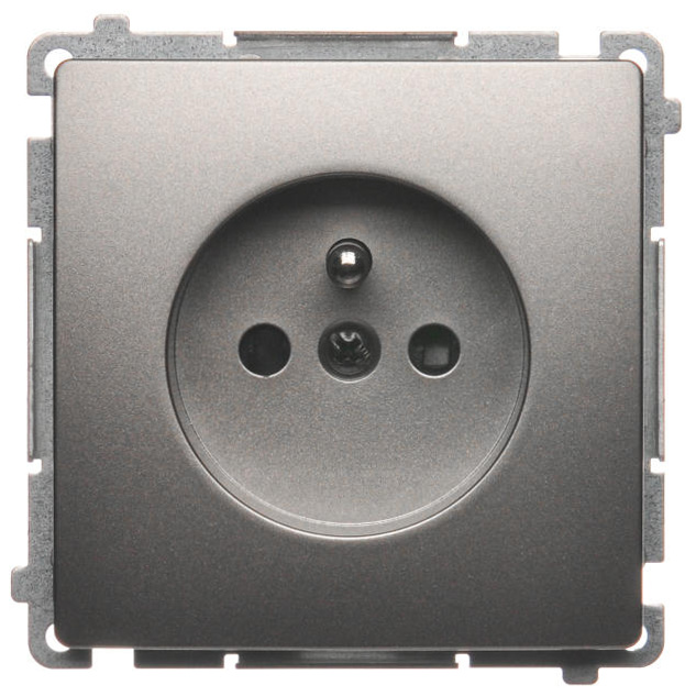 Zásuvka jednonásobná s uzemněním, s clonkami, (strojek s krytem) 16 A, 250 V~, šroubové svorky, Satén