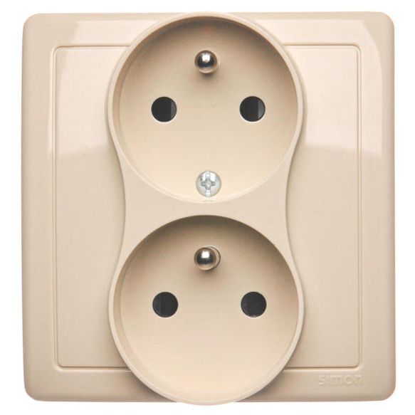 Zásuvka dvojnásobná s uzemněním, s clonkami, 16A, 250V~, šroubové svorky, Béžový