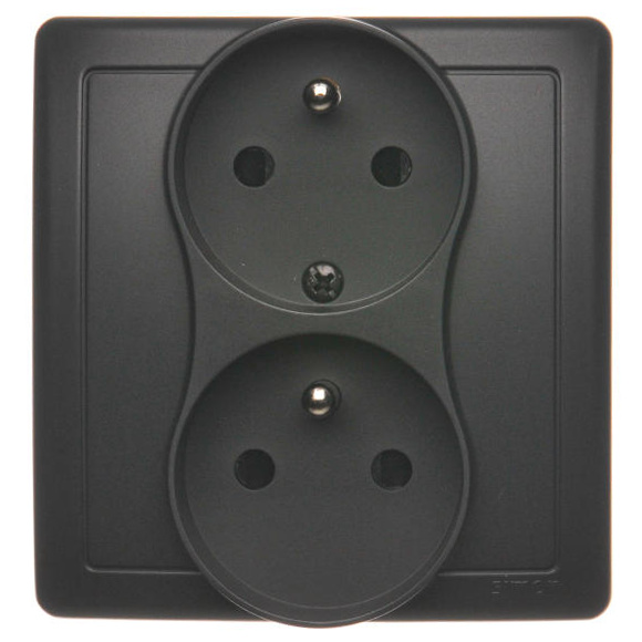 Zásuvka dvojnásobná s uzemněním, s clonkami, 16A, 250V~, šroubové svorky, Grafit