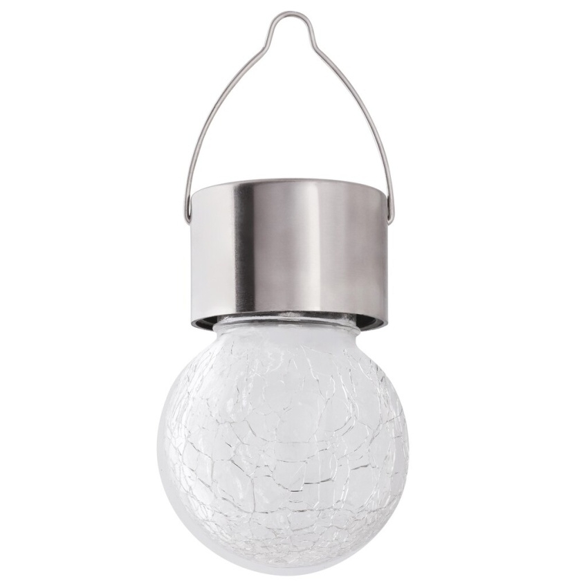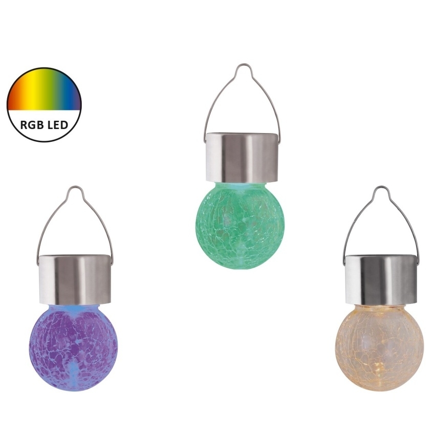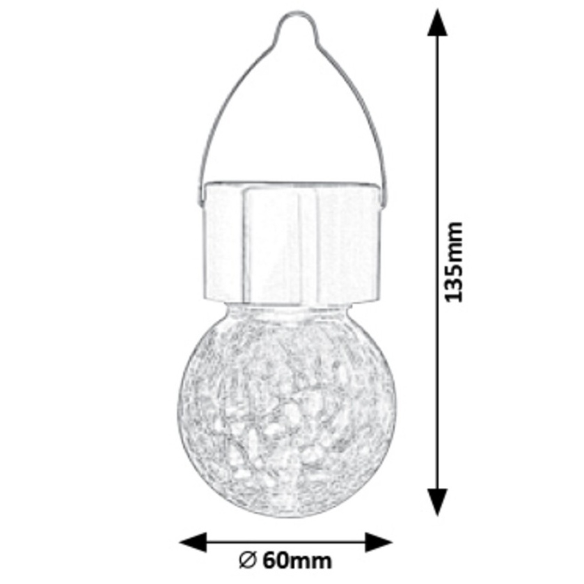 Díky vylepšené barevné funkci RGB můžete s vnější solární lampou Yola na vaší terase nebo v zahradě vytvořit magickou atmosféru. Saténová chromovaná závěsná dekorační lampa je vyrobena z kovu a skla a má moderní a hravý vzhled. Tento model má vestavěný, energeticky úsporný LED světelný zdroj s výkonem 0,06 W, světelný tok 1 lumen a životnost 6 000 hodin. Typ solárního článku: AA NiMH 60mAh. Celková výška solární lampy Yola je 135 mm a průměr jejího kulatého stínítka je 60 mm. Tento model má krytí IP44, takže je chráněn proti pronikání předmětů s maximálním průměrem 1 mm a proti stříkající vodě z jakéhokoliv směru.