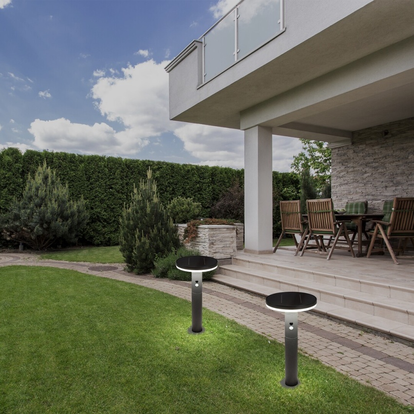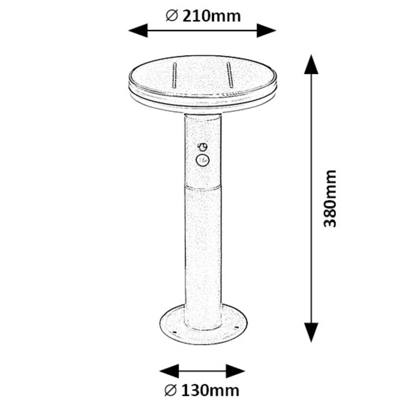 Venkovní stojací lampa Alaska se solárním senzorem pohybu v moderním stylu je praktickou volbou pro zahradní osvětlení. Může pomoci osvětlit chodník přes zahradu, podél kterého jich můžete umístit několik. Tento model s oblými tvary je vyroben z nerezavějící oceli v antracitové barvě a je doplněn bílým plastovým stínítkem. Betů má zabudovaný LED 10W světelný zdroj s jasem 250 lumenů, a 300 lumenů bez stínítka, životností 10 000 hodin a barevnou teplotou 4000 K, tj. přirozené bílé světlo. Inteligentní snímač, který mění jas světla podle podmínek, rozpozná pohyb ze vzdálenosti 5-8 metrů při úhlu záběru 120°. Baterie má napětí 3,7 V a kapacitu 2500 mAh. Rozměry stojací lampy s vypínačem jsou následující: průměr 210 mm, výška 380 mm, instalační průměr 130 mm. Krytí IP44 venkovní svítilny zaručuje, že je chráněno proti vniknutí předmětů o průměru až 1 mm a proti stříkající vodě z jakéhokoli směru.