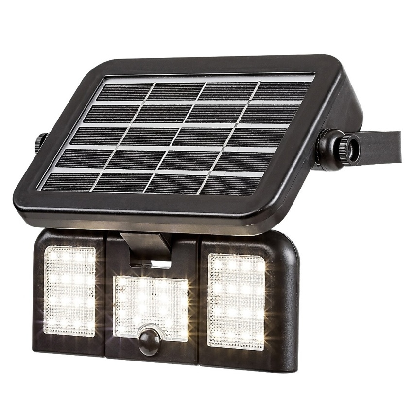 Trojité vnější nástěnné svítidlo Lihull v moderním stylu se senzorem pohybu a solárním napájením poskytuje účinné osvětlení na terase nebo na vnější stěně domu podél chodníku vedoucího ke vchodu. Tento celoplastový černý model je doplněn bílou stínítkem. Model Lihull má zabudované světelné zdroje LED 9,6W s celkovým jasem 500 lumenů a 600 lumenů bez stínítka, a teplotou barev 4000 K. Životnost zdrojů přirozeného bílého světla je 10 000 hodin. Inteligentní snímač, který mění jas světla podle podmínek, rozpozná pohyb ze vzdálenosti 5-8 metrů při úhlu záběru 120°. Baterie má napětí 3,7 V a kapacitu 3000 mAh. Nástěnné svítidlo s vypínačem má šířku 200 mm a výšku 130 mm. Krytí IP44 venkovní svítilny zaručuje, že je chráněno proti vniknutí předmětů o průměru až 1 mm a proti stříkající vodě z jakéhokoli směru.