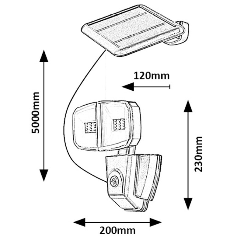 Solární venkovní nástěnné svítidlo Zlarin v moderním stylu se snímačem pohybu lze použít k efektivnímu osvětlení terasy nebo namontovat na vnější stěnu domu podél chodníku vedoucího ke vchodu. Černý celoplastový model je doplněn bílým stínítkem. Zlarin má zabudovaný LED 12W světelný zdroj s jasem svítivostí 700 lumenů se stínítkem a 800 lumenů bez stínítka a teplotou barev 4000 K. Zdroj přirozeného bílého světla má životnost 10 000 hodin, napětí baterie je 3,7 V a kapacita 4000 mAh. Inteligentní snímač rozpozná pohyb ze vzdálenosti 5-8 metrů při úhlu záběru 120° a podle podmínek upraví jas světla. Délka kabelu Zlarin je 2000 mm. Rozměry svítidla s vypínačem jsou následující: šířka 200 mm, výška 230 mm, vzdálenost od stěny 120 mm. Nástěnné svítidlo Zlarin je chráněno stupněm krytí IP44, což zaručuje ochranu proti vniknutí předmětů o průměru až 1 mm a proti stříkající vodě z jakéhokoli směru.