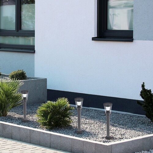 Solární venkovní stojací lampa Angers v moderním stylu se doporučuje především na terasu nebo do zahrady. Válcovité svítidlo s průhledným stínítkem, které se rozšiřuje směrem nahoru, je vybaveno světelným senzorem, tzn. j. upravuje jas svítidla podle podmínek. Tento šedý model je vyroben výlučně z plastu a má plochý kulatý dekorativní podstavec s hlavou lampy umístěnou na válcové noze. Angers má zabudovaný LED světelný zdroj, s výkonem 3 W, svítivostí 300 lumenů se stínítkem a 450 lumenů bez stínítka, a životností 15 000 hodin. Světelný zdroj s barevnou teplotou 4000 K vyzařuje přirozené bílé světlo. Baterie lampy má napětí 3,7 V a kapacitu 2000 mAh. Angers má rozměry: výška 630 mm, průměr 120 mm, instalační průměr 100 mm. Venkovní svítidlo má stupeň krytí IP65, což znamená, že je zcela uzavřeno a chráněno proti pevným částicím a nečistotám, jakož i proti nízkotlakým proudům vody. Ideální rozsah pracovních teplot –je –10–40 °C.